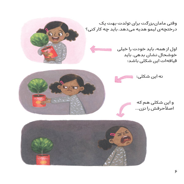 تولد دختر کوچولو نزدیک است و او دلش می خواهد مامان بزرگش به او هدیه ی ویژه ای بدهد. ولی مامان بزرگ برایش یک درختچه لیمو هدیه می آورد ! او از درختش مراقبت کرد و بعد با آن لیموها چیزهای خوش مزه درست کرد.